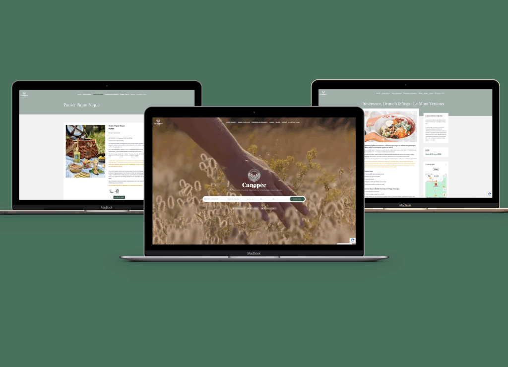 Création du site internet de Canopée, cheffe nomade en Provence : design immersif, boutique en ligne et système de réservation intégrés, pour une expérience à la fois poétique et fonctionnelle.