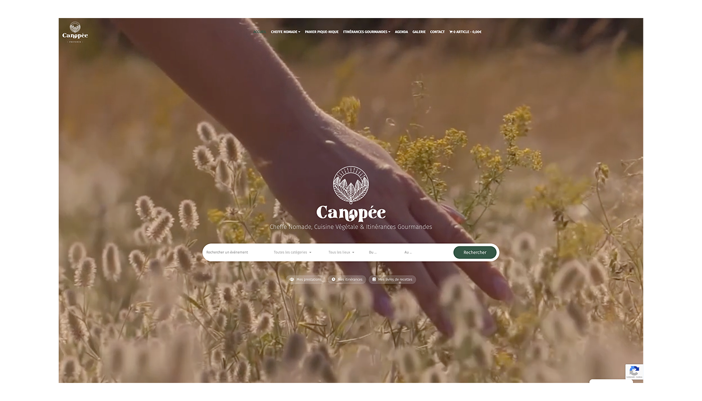 Création du site internet de Canopée, cheffe nomade en Provence : design immersif, boutique en ligne et système de réservation intégrés, pour une expérience à la fois poétique et fonctionnelle.
