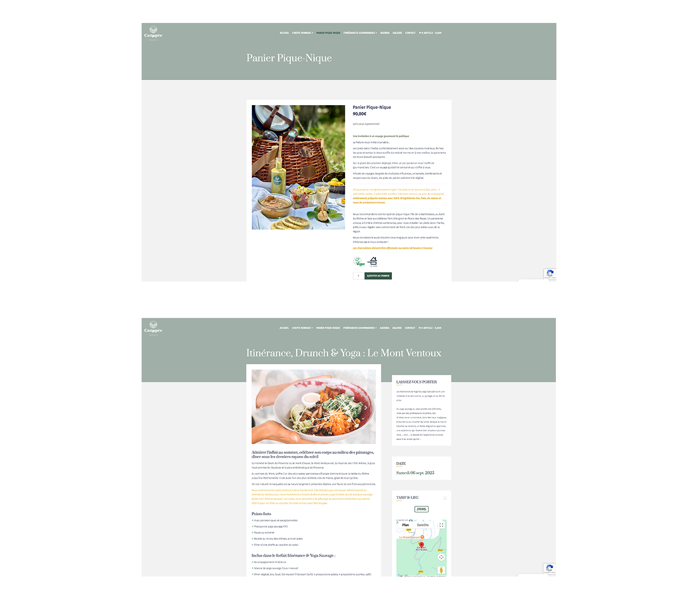 Côté prestations, un système de réservation permet aux visiteurs de choisir une date pour participer à une “Itinérance Gourmande” et payer directement en ligne. C’est simple, rapide, et ça fonctionne aussi bien sur mobile que sur desktop.