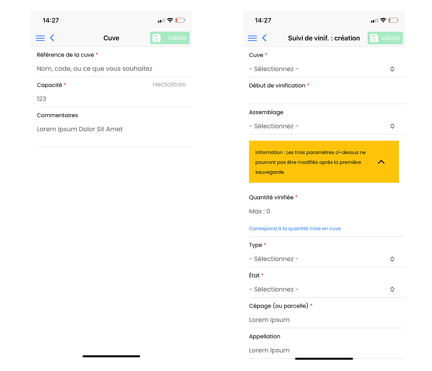Dans un second temps, une version mobile native (iOS et Android) a été développée, avec une contrainte forte : fonctionner même sans réseau. En effet, dans les caves ou les chais, la couverture mobile est parfois inexistante.