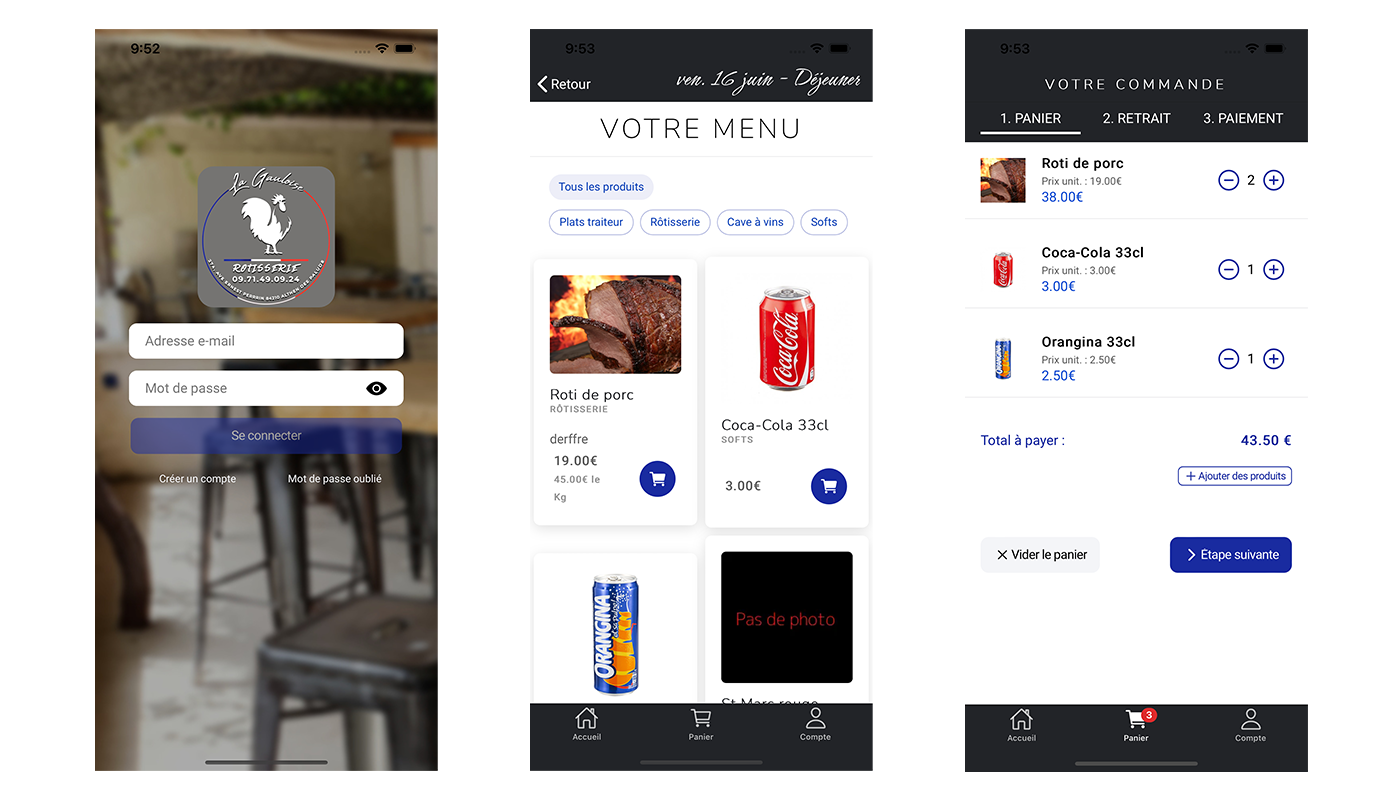 Développement d’une application mobile sur-mesure pour la Rôtisserie La Gauloise : commande et paiement en ligne, gestion des produits par jour et intégration Stripe. Disponible sur iOS et Android.